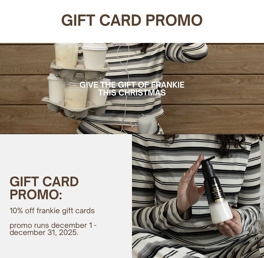Frankie gift cards are 10% off now through December 31st. Send a gift card as a gift, or treat yourself. For physical gift cards, visit the salon.