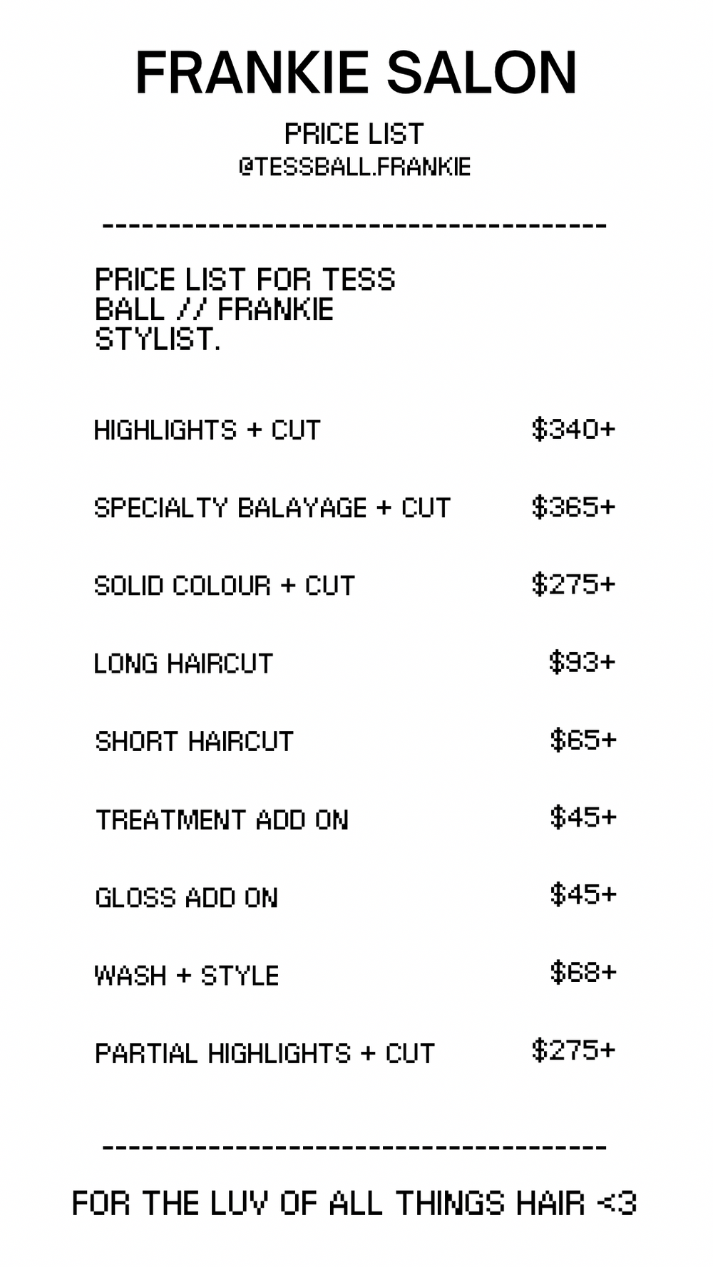 @tessball.frankieNUMBER OF YEARS IN THE HAIR INDUSTRY: 20 years